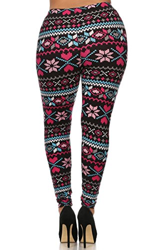 Leggings Depot Ultra Soft Popular Best Holiday Christmas Printed Women Fashion Leggings (Plus Size (Size 12-24), Wish Of Love)