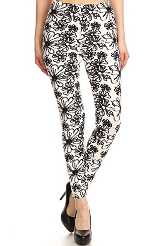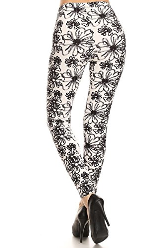 Leggings Depot Ultra Soft Popular Best Holiday Christmas Printed Women Fashion Leggings (One Size (Size 0-12), Flower Etch)