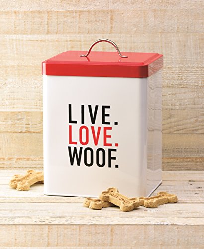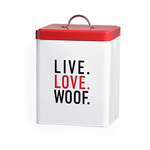Amici Pet 7CDI038R Live Love Woof Metal Storage Canister, 208 oz, White/Red/Black
