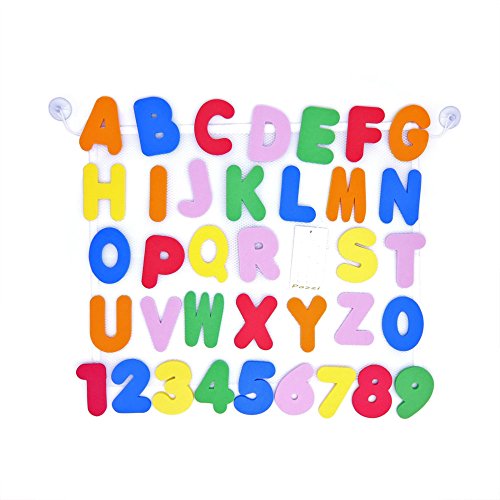 Pazzi Bade Buchstaben Zahlen Schaum 36-teiliges Alphabet Baby Badespielzeug mit Badezimmer Spielzeug Netz Organisator (45x35cm)