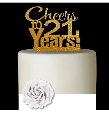CakeSupplyShop Item#021CTA - 21st Birthday / Anniversary Cheers Super Gold Glitter Sparkle Elegant Cake Decoration Topper