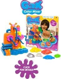 The Nickelodeon Gak Color Mixer lets you turn Gak colors into even wackier Gak color combinations. Just use any two or more colors of Gak, crank the handle and watch your Gak as a new wacky Gak color is created! Crank It! Twist it! Spin it! and Mix it! - The Nickelodeon Gak Color Mixer is one of the wackiest, Gakiest products around! Not a food product; do not eat.Feature