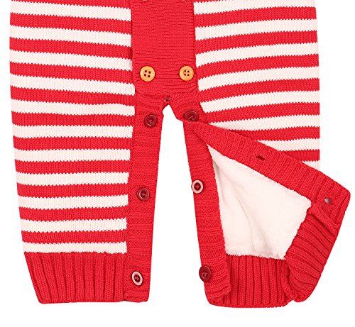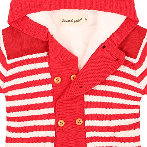 ZOEREA Infant Newborn Baby Romper Sweaters Velvet Knitted Hooded Striped Material: 100% cotton blend + coral fleece.