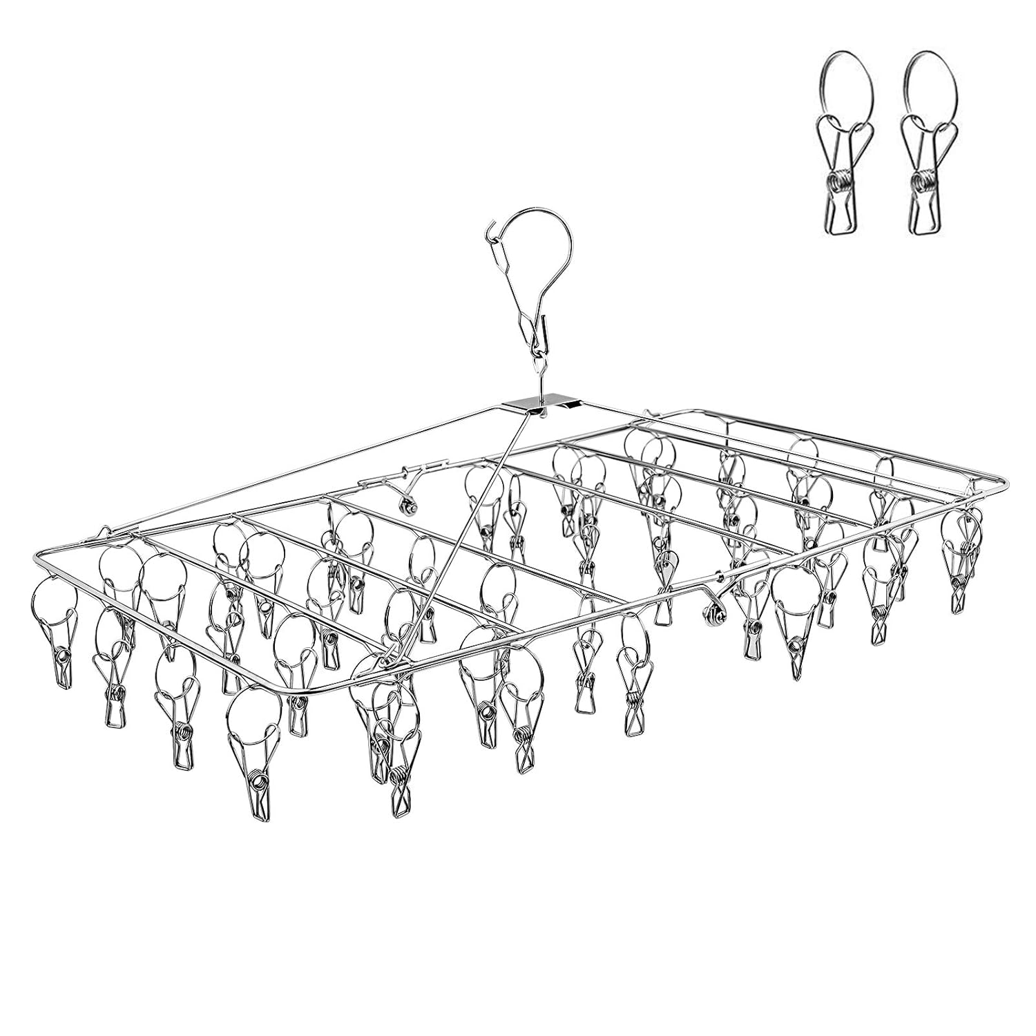 360度回転式:便利な回転ネックを設計されましたので、洗濯物ハンガーは360°回転でき、全方向から洗濯物を干しやすいです。洗濯物ハンガーの向きを自由に変えられ、ピンチが交互に配列されており、通気性がとても良いです。