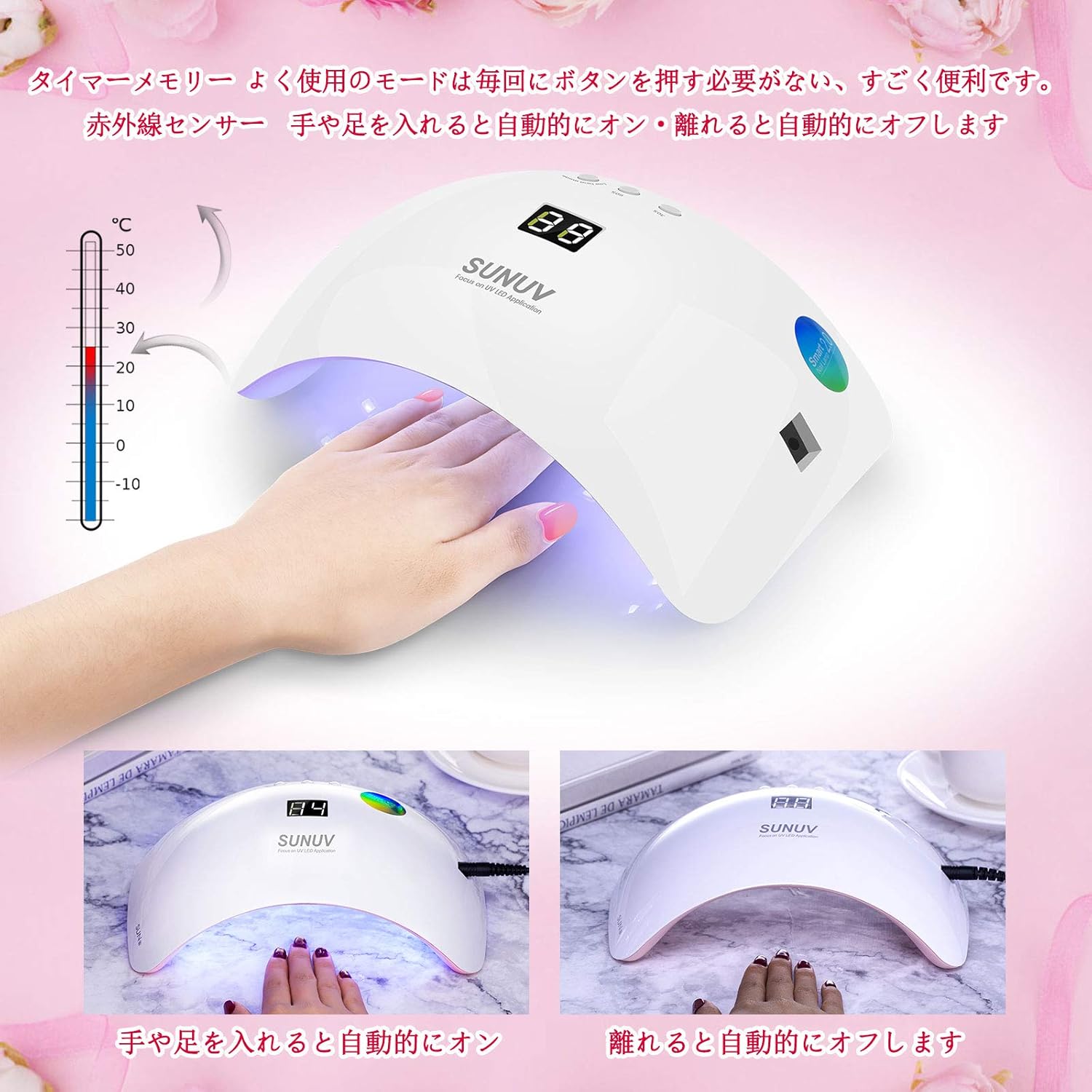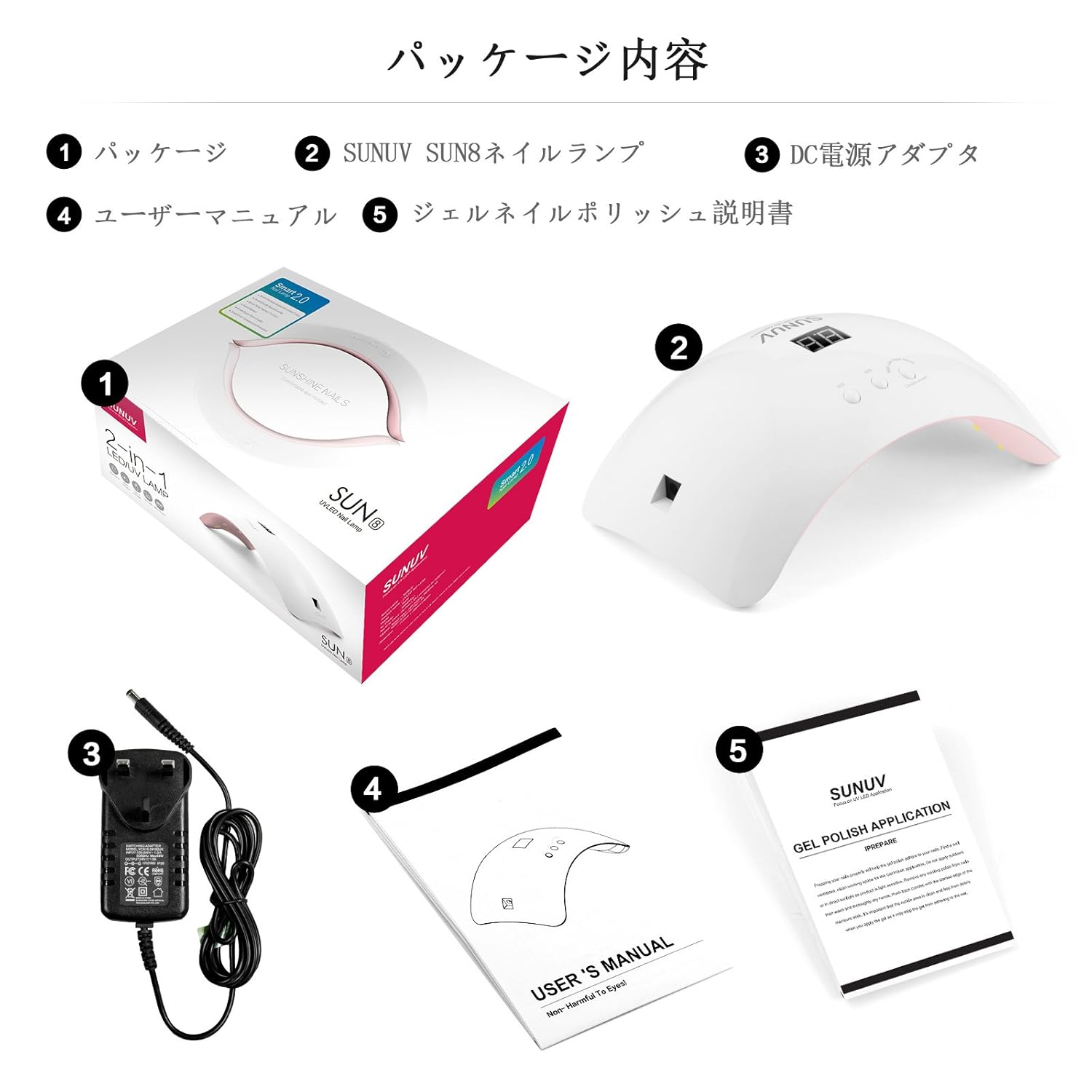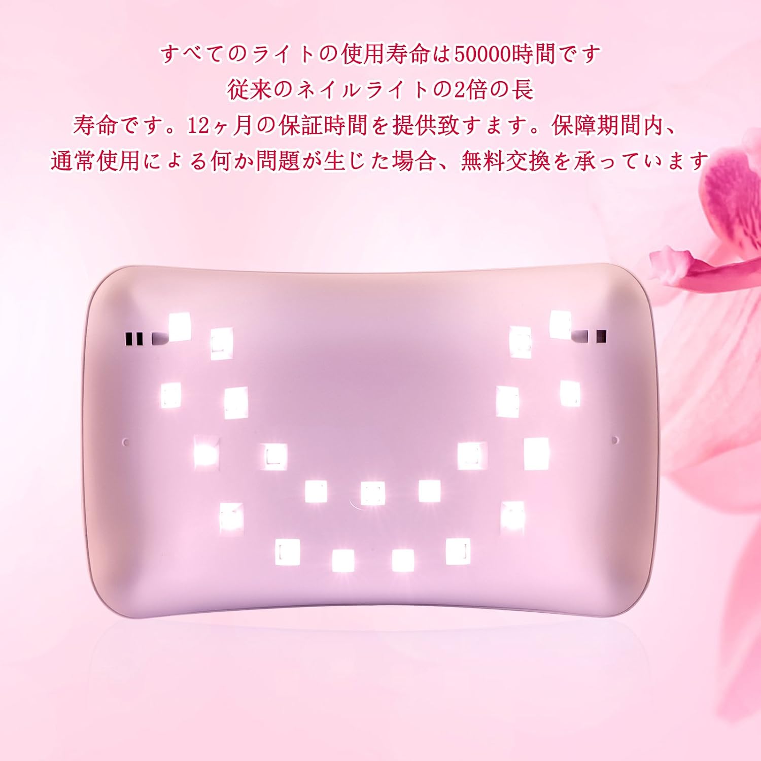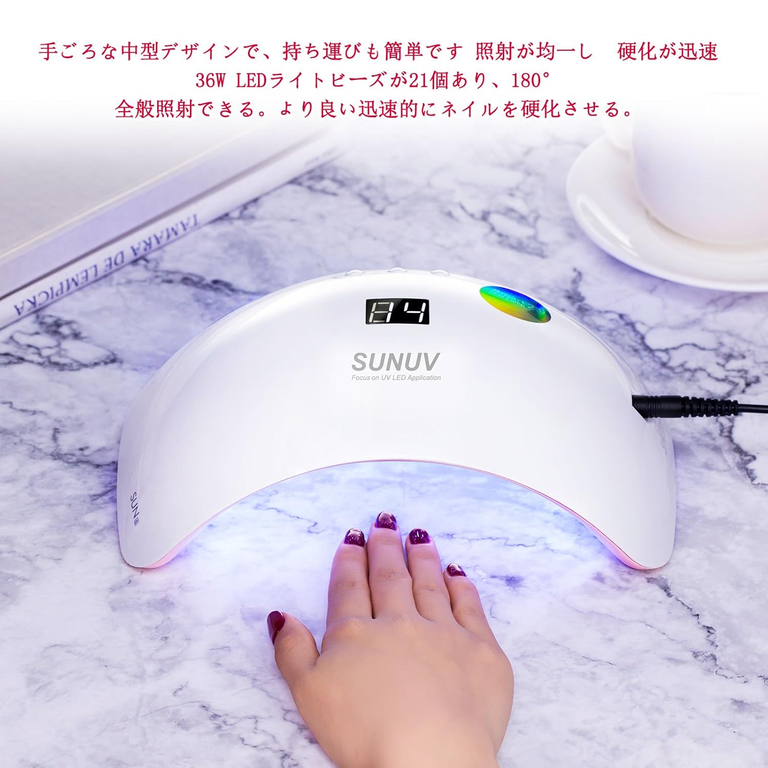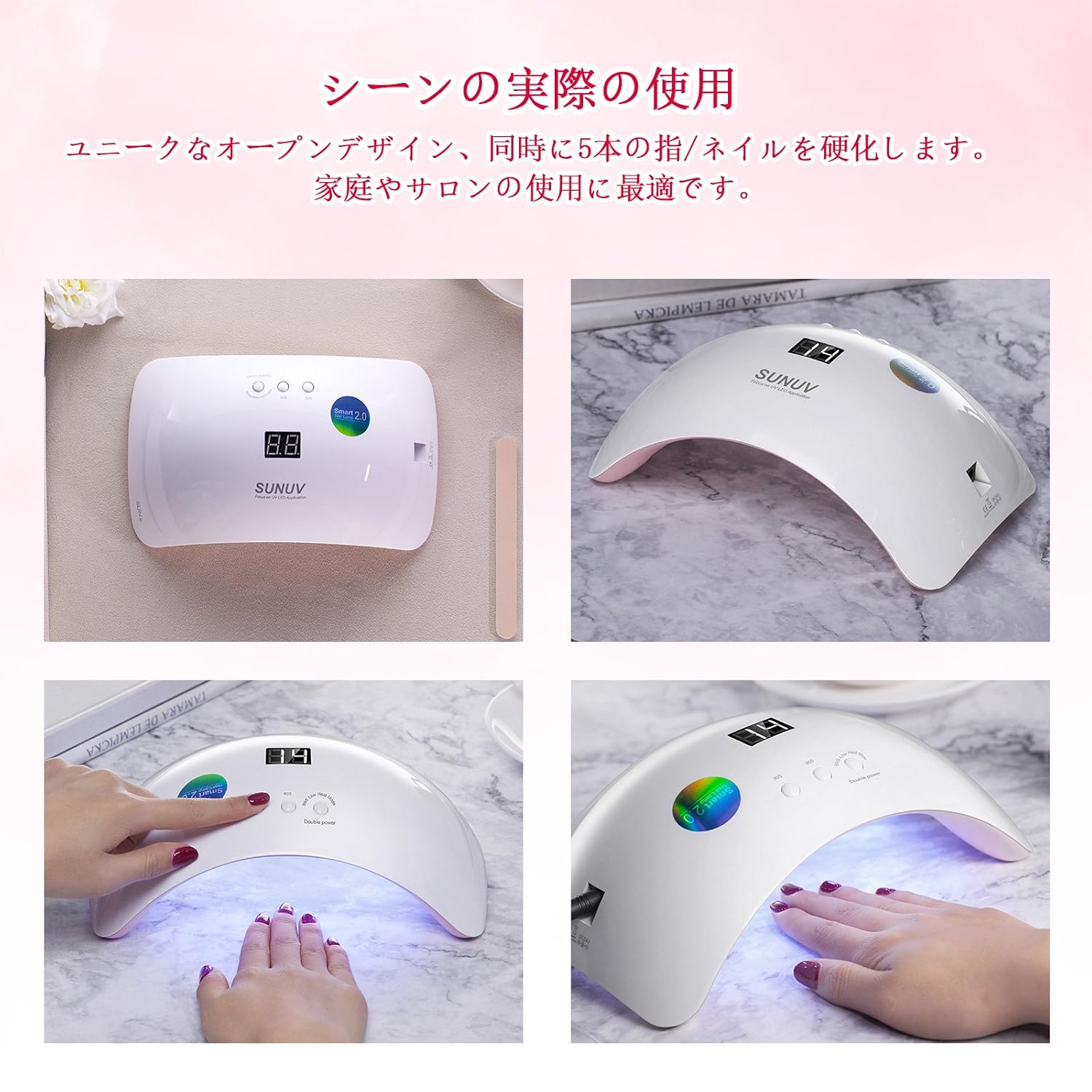 4.持ち運びが簡単、使いやすい:手ごろな中型デザインで、持ち運びも簡単です。5本の手や足の指を同時に硬化できて、親指や小指を分けて硬化する必要がありません。電源を入れるだけでネイルが始まります!やさしい白色光源:SUN8の白色光源は従来のネイルライトの青紫光源よりも快適なネイル体験ご提供すると同時に、爪、肌、目にもとてもやさしい仕様となっています。
