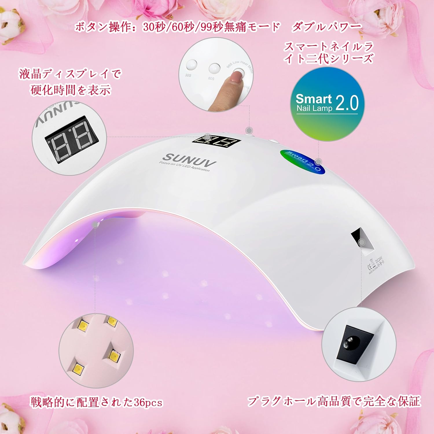3.スマートネイルの二代:お客様がより快適に使えるように、SUNUVの先端技術でネイルライトをもっとスマートにしました。--赤外線センサーでボタンを押す手間を省きます。「99秒無痛モード」はお客様に心地良いエクステンションジェル体験をご提供します。「ダブルパワーモード」で硬化時間を50 %短縮;大型液晶ディスプレイで硬化時間を表示;などの機能があります。