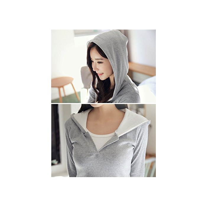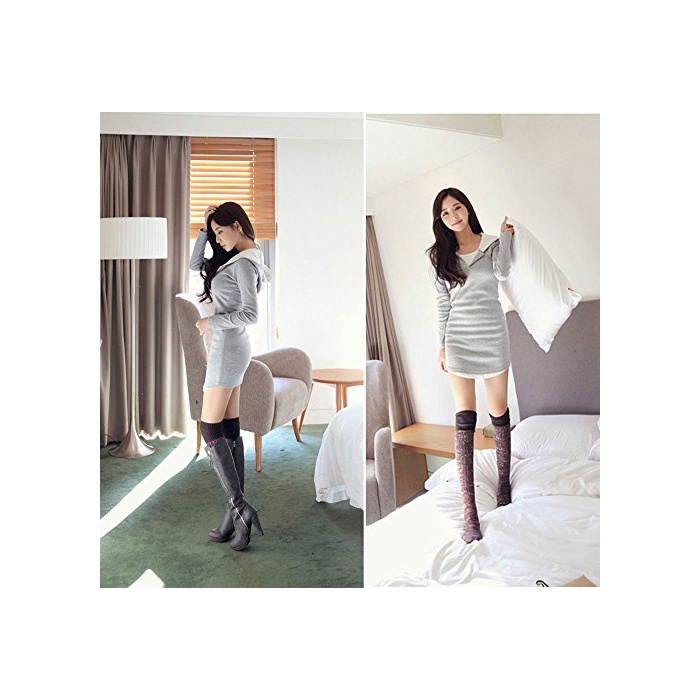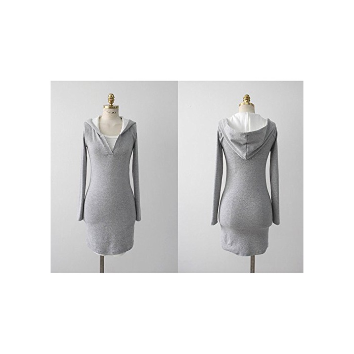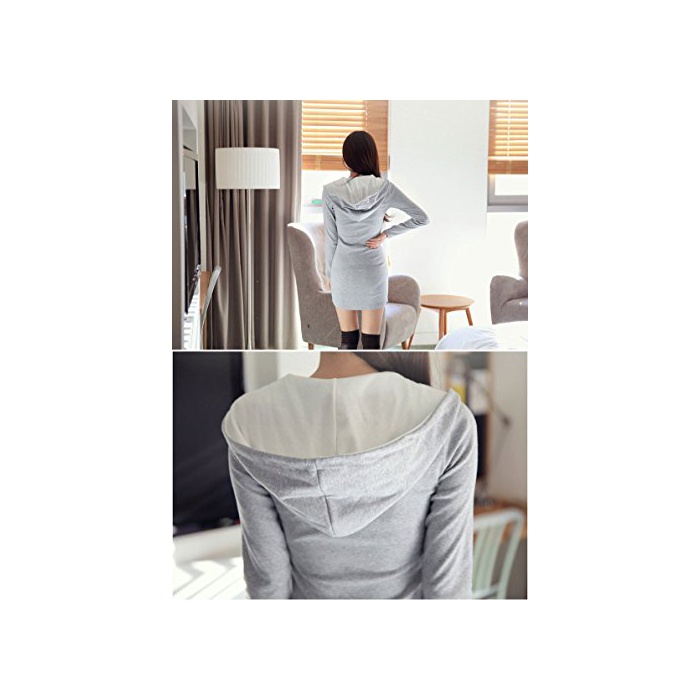 캐주얼 너무 좋아!심플 디자인 긴 소매 후드 부착 튜닉장 원피스입니다.
