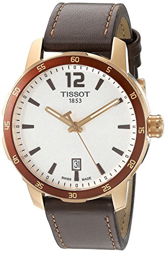 -. Title : ティソメンズ' Quickster ' Swiss QuartzステンレススチールandレザーAutomatic Watch , Color : Brown ( Model : t0954103603700 )