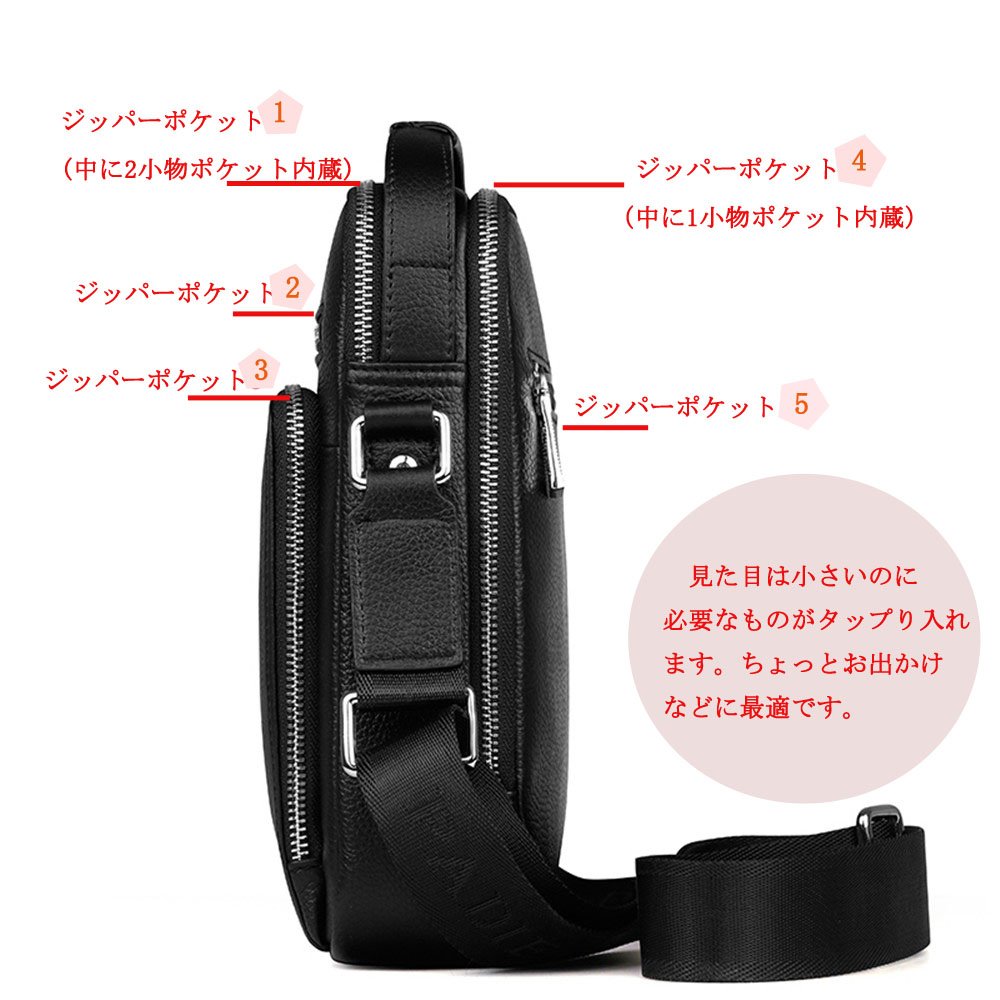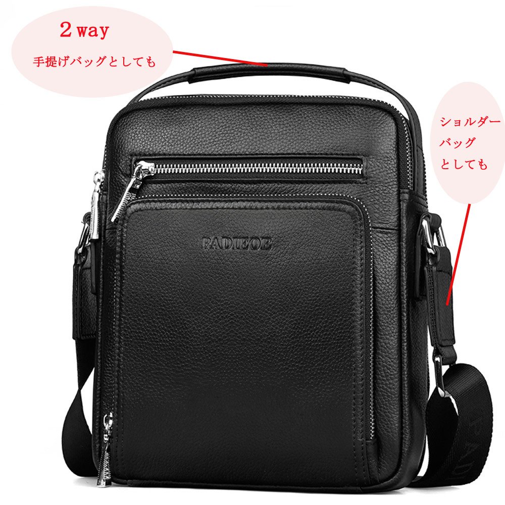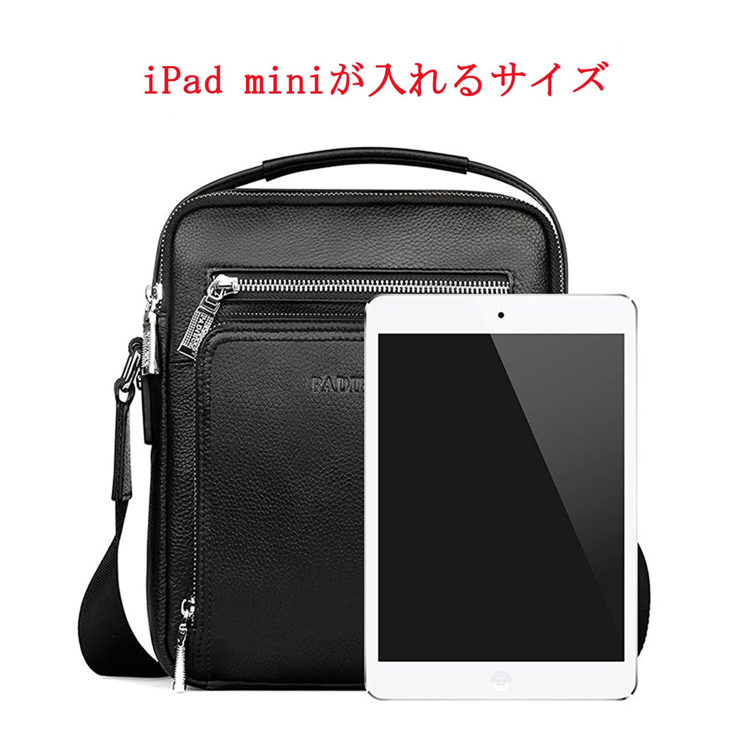 Padieoe (Padio) Men's shoulder bag diagonal iPad mini storage possibility real leather vertical type black