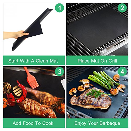100% NON-STICK --- 100% Non-Stick means you can grill without grease and mats are reusable for years! Non-stick BBQ grill mat prevent even the smallest morsels from falling through the grates. For the first time we bring you the convenience of the kitchen to your BBQ, prepare eggs, cheese, sauces, pizzas and marinades, without any food sticking to the bbq.