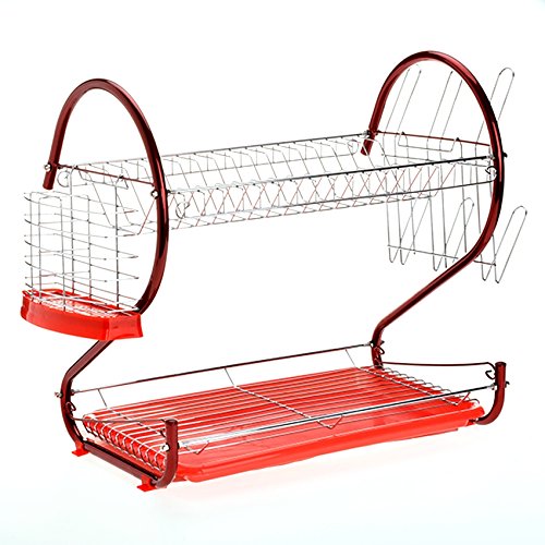 Stainless Steel 2 Tiers Dish Drying Rack with Drainboard Set Over Sink Drainer Rack[US Stock]