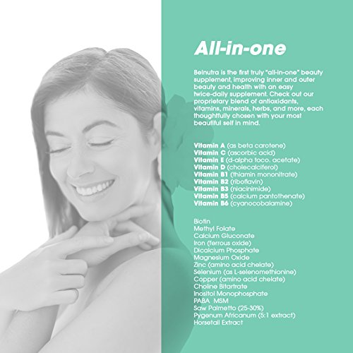 -. Feature : LOOK GREAT, FEEL GREAT: Our nutrient-rich, twice-daily capsules will enhance every element of your physical appearance, so you'll feel confident and empowered to take charge and conquer any challenge you face during the day. Start taking Belnutra, and you'll soon see the difference: a more rested appearance, healthier skin, thicker and shinier hair, stronger nails and more energy. / BEAUTY FROM THE INSIDE OUT: Stop mixing three or four different supplements to get all the nutrients you need. Our 100% natural, proP.R.Ietary blend of antioxidants, vitamins, minerals, and herbal extracts contains everything your body needs to look its best in one easy-to-swallow capsule. / CRUELTY-FREE AND FULLY ORGANIC: Looking gorgeous shouldn't mean giving up your values. That's why our product is fully vegan and contains no soy, dairy, nuts, gluten or GMOs-and we never test it on animals. / FORMULATED BY EXPERTS: To ensure the safety, quality and effectiveness of our product, top researchers, scientists and dieticians test every single ingredient in Belnutra. / PROUDLY MADE IN THE USA: We manufacture our supplement with the highest ethical and product quality standards in a Good Manufacturing Practices certified environment.