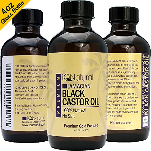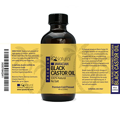 IQ Natural's 100% Cold Pressed Jamaican Black Castor Oil for Hair Growth and Skin Conditioning - 4oz Bottle (Regular)
