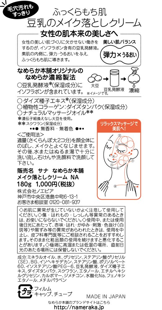 SANA Nameraka Isoflavone Makeup Cleansing Cream 0.5 Pound
