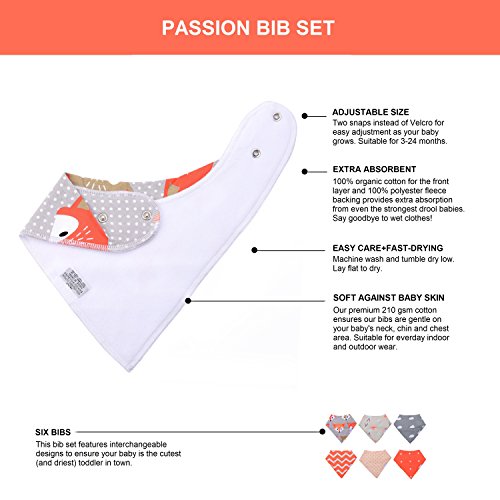 Studio : KiddyByte Publisher : KiddyByte Binding : Baby Product Product Description DEAR PARENTS, DOES YOUR BABY SPIT UPS, DROOLS AND DRIBBLES CONSTANTLY MAKE THEIR CLOTHES WET? Fret not! Our stylish and highly absorbent KiddyByte baby bibs are here to the rescue. You don't have to use a plain looking bib to cover their cute clothes, constantly wipe off their drool, or keep changing their wet clothes. Simply use our KiddyByte bibs and your baby will look good and feel great while drooling. After all, we're parents too and want the best for your baby. Made Of Premium Quality Extra Soft Organic Cotton Not all fabrics are suitable for your little one's sensitive skin. That's why our baby bandana bibs are made with the finest 210gsm 100% organic cotton fabrics! We also do not use Velcro which may scratch your little one's skin, but use 2 nickle-free adjustable snaps which are suitable for babies up to 24 months old. Our front layer is made of 100% cotton which absorbs water effectively, and the back layer is 100% polyester fleece which prevents water from passing through to your baby's clothes. What's more, cleaning them is really easy! Just wash them with water and soap, and they'll be good as new in no time. PASSION 6-Pack Bib Set This 6-pack bib set is meant for those with PASSION - the girl born with a burning desire to live out her life's purpose. A person who will live life passionately and give her best in all she does. Our bib sets are precisely stitched to ensure that it lasts a long time, even after multiple washes. The beautiful design and colors will also look great in photos! 100% Risk-Free Satisfaction Guarantee We are so confident in our bib sets, that we also offer a 100% risk-free satisfaction guarantee. Not happy at anytime? Simply contact us and we will make it right for you! So, What Are You Still Waiting For? Order Your Own KiddyByte Baby Bandana Bibs Set Of 6 Today! Just Click 'Add To Cart'! 0
