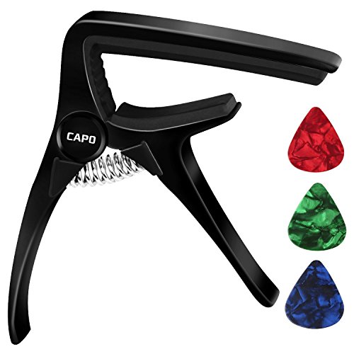 Studio : NIUBIER Publisher : NIUBIER Product Description NIUBIER Quick Change Guitar CAPO -Quickly and easily released and repositioned without disturbing the tuning. -You can easily change your guitar tone to a higher pitch. -High quality soft silicone pad protects your music instrument against scratches or damage. -It is well constructed, and perfect for acoustic and electric guitars, also fits for Ukulele, Banjo, Bass, Mandolin. Features -Color: Silver -Material: High quality zinc alloy and soft silicone -Package: 1*GUITAR CAPO 3*GUITAR PICKS NIUBIER CUSTOMER SERVICE 1.For the first 30 days after purchase you can return the product to us for a full refund or replacement with no questions.Amazon's Warehouse, receiving on time is ensured; 2.If you have any problems about the products, Email us and you will get a respond within 12 hours. 0