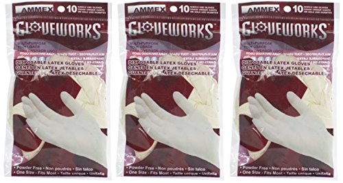 AMMEX - GWL10PK-S - Latex Gloves - Gloveworks - 10/pack, Disposable, Powder Free, 4 mil, Uni-size, White (Pack of 30)