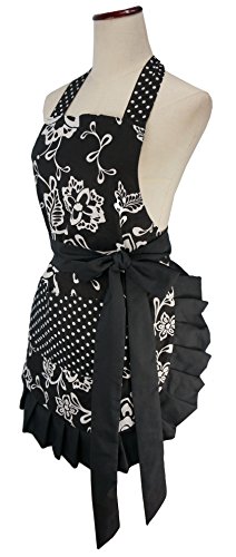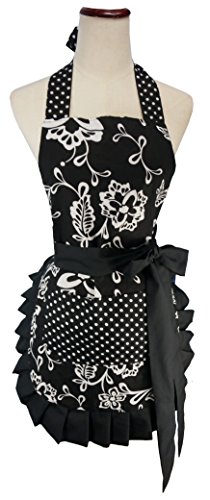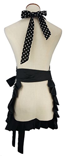 LilMents Ruffle Bow Waist Tie Kitchen Fashion Costume Apron (Black)