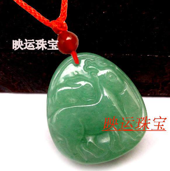开光绿色玉兔 扬 位石坠吊坠 属猪挂件