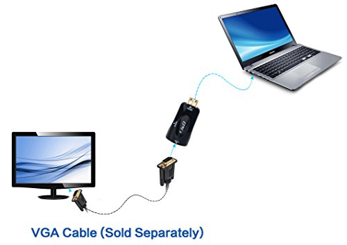The mini HDMI to VGA with audio adapter connects any mini HDMI compatible device to a monitor or projector with VGA port. a separate VGA cable (not included) is required