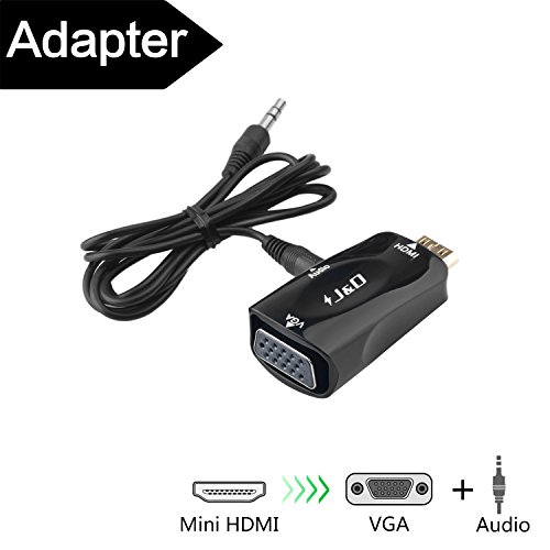 Mini HDMI TO VGA, J&D Gold-Plated Mini HDMI to VGA Adapter Converter with 3.5mm Audio Port 1080P - Black