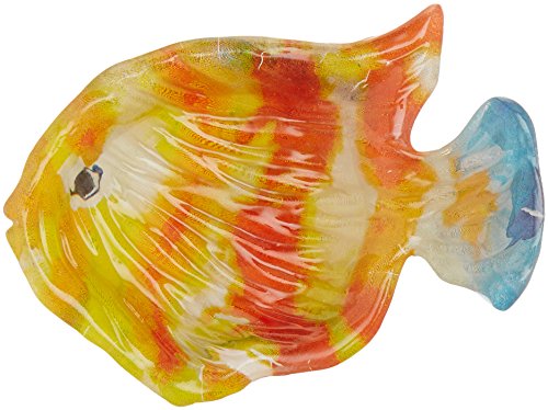-. Feature : Dimensions: 6.25L x 4.75W x 2H in. / Made of resin / Rich watercolor palette of aqua, yellow, and orange / Features a sea-themed fish design / Sculpted to create an optical, rippling water effect