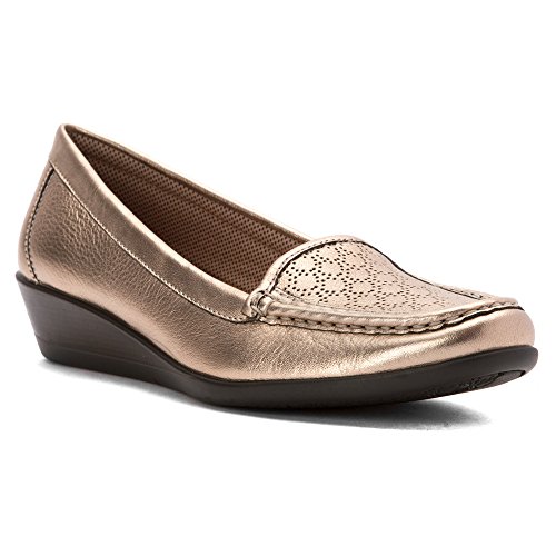 Amazon.com Tough enough for the trail, refined enough for city streets, the Grace slip-on from Eastland offers breathable leather uppers, whip-stitching accents, and a side zipper for easy entry and exit. A padded footbed and collar deliver comfy support, while the polyurethane outsole provides cushioning and durable traction. 0