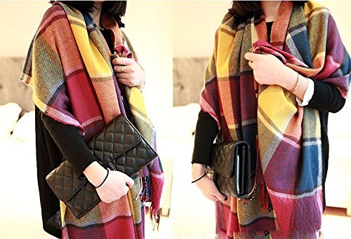 Color: Classic colorful lattice and pure color fashion scarf Materials: viscose and cotton Length:75" Width:24" Tips: Need hand wash, before cleaning add salt soak, then won't fade. Can match all kinds of clothes:The colorful plaid scarf and the pure color fashionable scarf can match the different style clothes, whether is the autumn coat or the winter down jacket, this scarf all is a very good choice. Travel or work on the way to school, can increase your warmth.