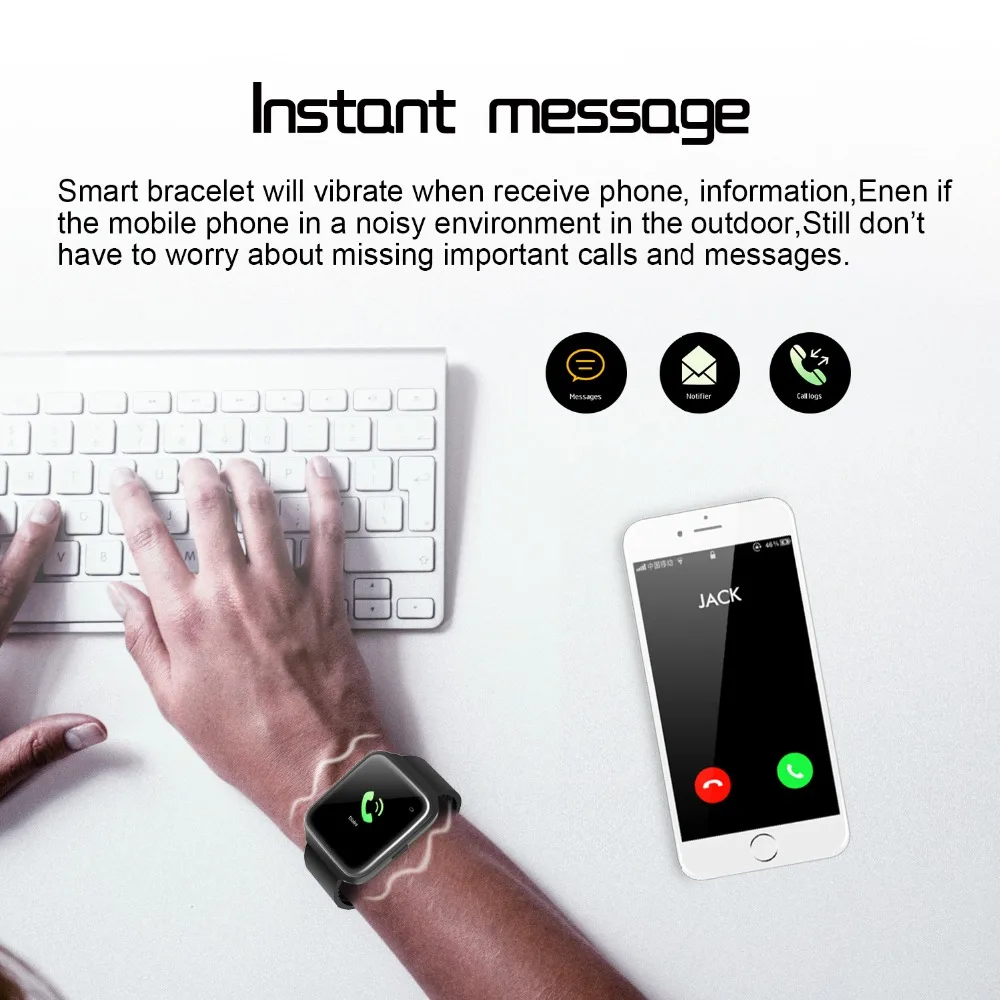 Function:Message Reminder,Passometer,Activity Tracker,Alarm Clock,Fitness Tracker,Blood Pressure,Call Reminder,Sleep Tracker,Heart Rate Tracker,Push Message