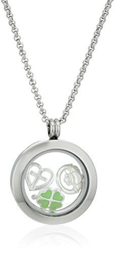 Charmed Lockets Irish Claddagh Charm Locket Necklace, four-leaf clover charm