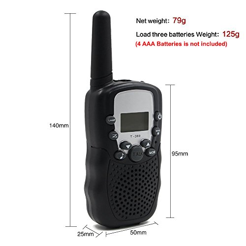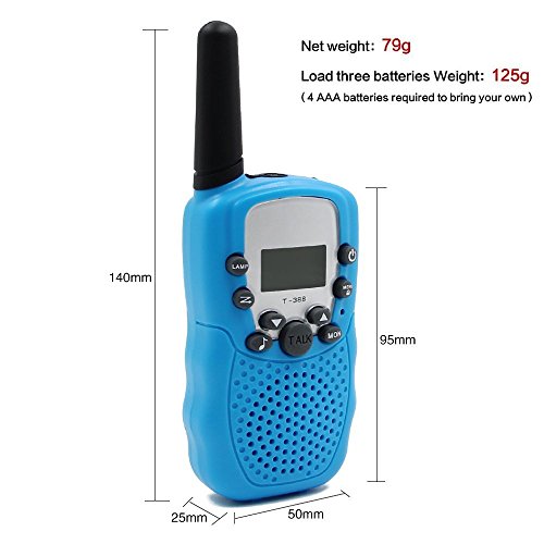 -. Feature : Good Sound Quality: Equipped with 22 channel PMR system with auto scan function, which allow the walkie talkie find an open channel fast and mute the background noise, so you keep in touch with your children when they lost in the supermarket or shopping centre. / Easy to Use: Simply press PTT key to talk, built-in microphone, you can communicate over several kilometers free-of-charge(up to 3 km) in open areas. It convenient to carry around, even for smaller hands. It intended for ages 4 and up. / Night Use: The child walkie talkie comes with LCD backlit display comes in handy at night as it provides high visibility to see if everything's alright. Built-in LED torch can be used as both flash and emergency light. / Widely Use: It can be used in varies of indoor and outdoor occasion, like shopping mall, hotel, sP.R.Ing outing, summer camp, ect. It is also a good toy to strength parent-child interactive communication. / Health and Environmental Material: The item is made of standard material of toy, it's no harm to the child and durable material will extend service life. In case you encounter any further assistance, just feel free to contact our customer service team.