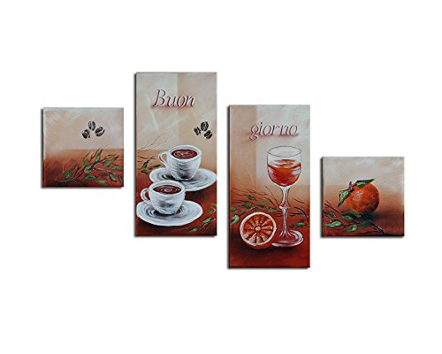 -. Title : Noah Art-Modern Canvas Artwork, 4 Panel 100% Hand Painted Oil Paintings Framed Gallery-Wrapped Kitchen Wall Art Set, Ready to Hang for Dining Room Home Decor Wall Decoration