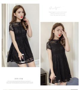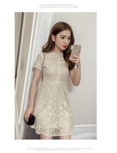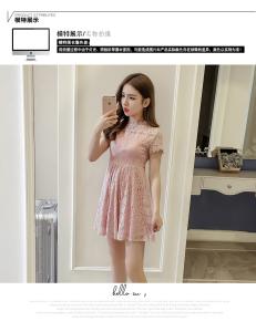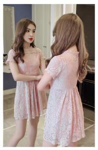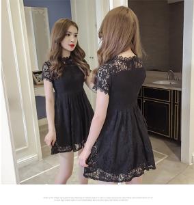 レースワンピース ミニ丈フレアワンピース 半袖 総レース ハイウエスト プチプラ レトロ ヴィンテージ ワンカラー