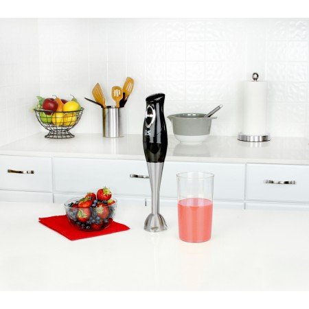 Kalorik Electronic Stick Mixer - Two Speed Control Settings - Stainless Steel Shaft and Blade - 200 Watt Motor for Easy Mixing - 30 Fluid Ounce Mixing Cup. Kalorik has a fantastic pedigree and history with quality items. The Stick mixer has two settings of speed for the rotating blade at the bottom. The whole Stick mixer is made to last as each of the pieces are made from Stainless Steel with a 200 watt engine. It is built for both speed and power, the Stick Mixer is perfect for any kitchen.Feature