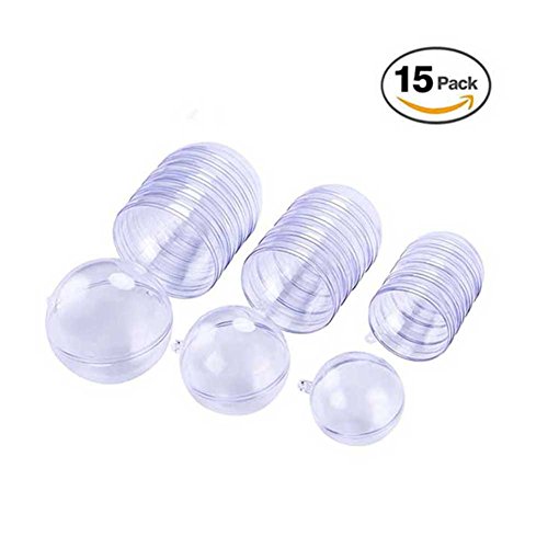 Each package comes with 15 individual clear ornaments: 5 x Size 40mm diameter (1.58 inches) – 5 x Size 50mm diameter (1.97 inches) – 5 x Size: 60mm diameter (2.36 inches)