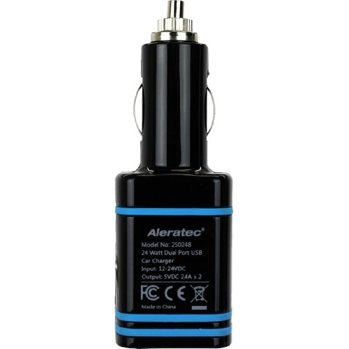 Aleratec 4.8 Amp Dual USB Port Car Charger For Apple And Android Smartphones Tablets