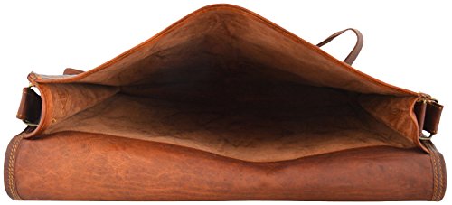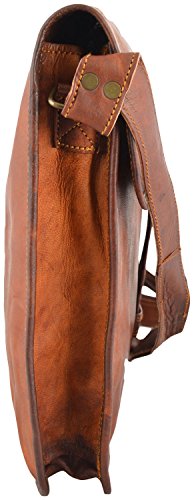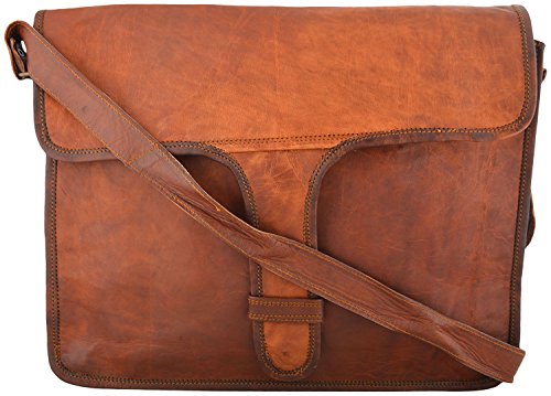 Studio : thehandicraftworld Publisher : thehandicraftworld Binding : Kitchen Product Description ITEM CODE- SBL0052 COLOR-BROWN Material- Real Goat leather SIZE -11"(H), 15"(L), 02"(D) 1 strap on front for closure. inside suade lining to keep laptop safe. 60" long extendable and removable shoulder strong strap. Made By the expert Artisan of Rajasthan. Weather proof and tanned from natural ingredients. Natural leather smell will be fade by the time of usage. Real Brass metal accessories used in this Bag 0