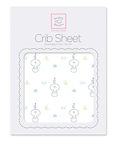 -. Title : SwaddleDesigns Cotton Crib Sheet, Made in USA, Premium Cotton Flannel, Pastel Blue Spaceman