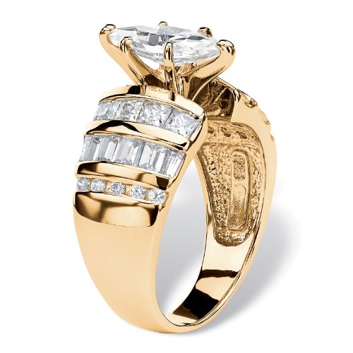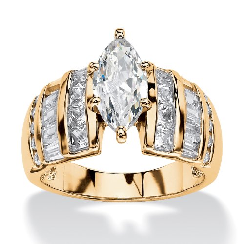 -. Title : Marquise-Cut White Cubic Zirconia 18k Gold over .925 Sterling Silver Step Ring