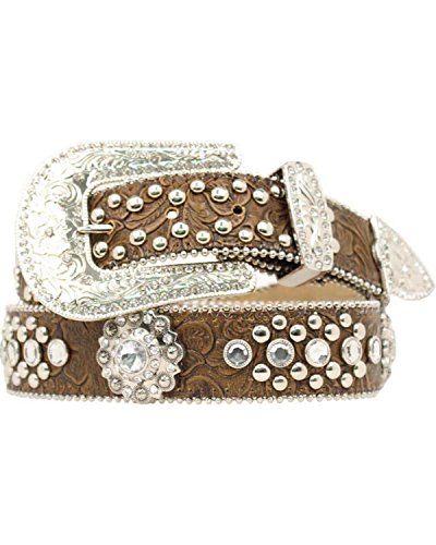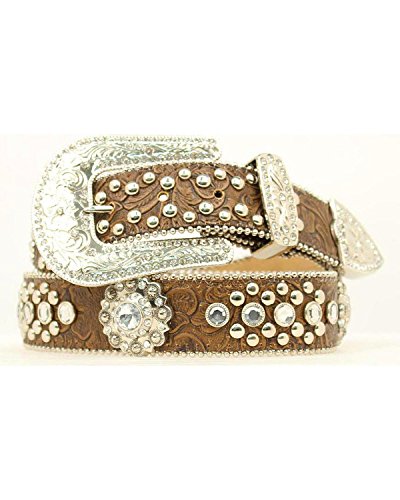 Studio : Nocona Publisher : Nocona Binding : Apparel Product Description An evening gown wouldn't be complete without stunning jewelry. Give your jeans the same star treatment with this awesome rhinestone studded leather belt by Blazin Roxx. This floral embossed belt features crystal conchos and silver-tone studs. Women's belt is approximately 1 1/2" wide. Removable buckle and keeper. Imported. 0