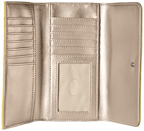 Exterior zip pocket. interior: 3 slips pockets, 12 card slots, id window