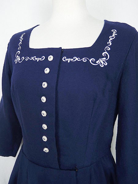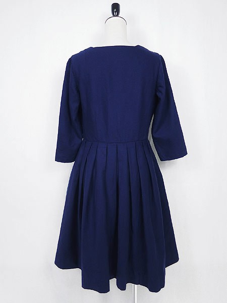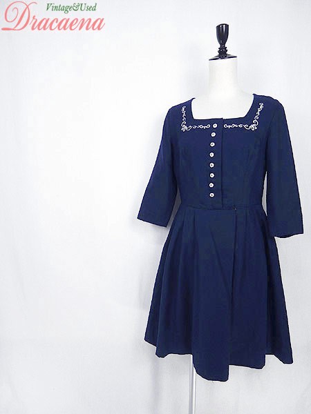 Ladies ブランド- カラー紺 メール便不可 コンディション★★★ 素材- 表記サイズ44 スタッフコメント身頃のみ裏地あり、裾は手縫いのまつり縫い。スクエアネック周りに白の刺しゅう、シックなアンティークボタンがネイビーカラーに映えて素敵なワンピースです。 実寸サイズ 着丈 92 cm 身幅 44 cm 肩幅 37 cm 袖丈 42 cm ウエスト 30 インチ( 76 cm) ※ウエスト・ヒップ以外は平置き採寸