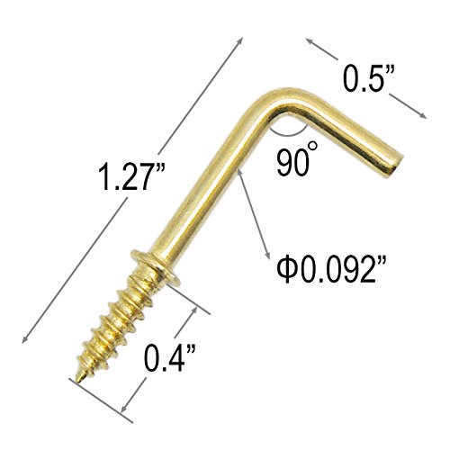 Shells 50PCS Gold Color Copper Plated Metal Right-angle Hooks 7 Shape Screw Hooks Self-tapping Screws Hooks L Shape Hooks 1.27 Inches