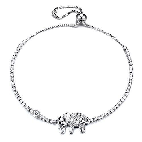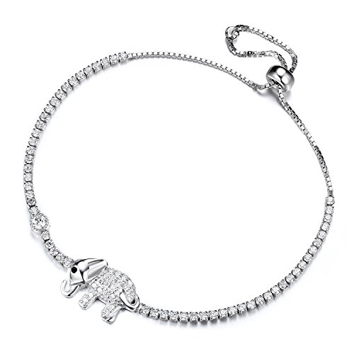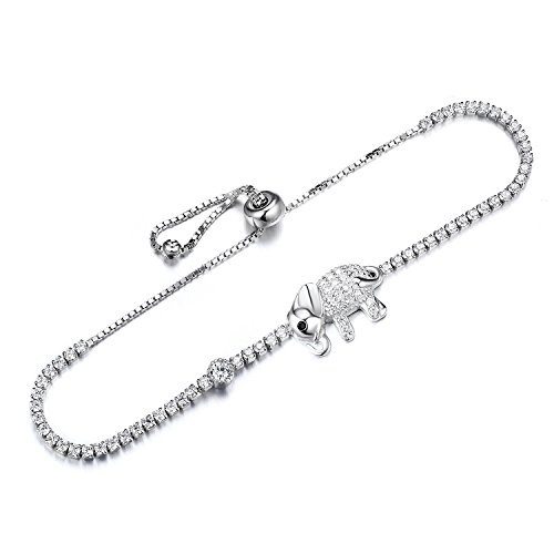 -. Title : GTB1120 S925 Silver CZ Stones Elephant Sizeable Tennis Link Bracelet Rhodium Plated