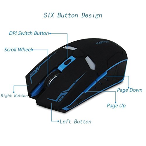 -. Feature : HIGH PERFORMANCE -- 2.4 GHz wireless provides a powerful, reliable connection at distances up to 33ft /10m. / COMFORTABLY AND SUITABLE -- This mouse has an ergonomic design to make you having better experiences and feelings. / PORTABLE AND CONVENIENT -- The mouse weighs only 80g(Including a battery), you can carry to anywhere to use. / EASY TO USE -- Every key's functions are all described in the pictures. you can press any key to wake up the mouse when the mouse in the power saving mode. / WARRANTY -- 45 days money-back & 24-months warranty, when you are not satisfied with our product, please don't hesitate to contact us. BUY WITH CONFIDENCE.