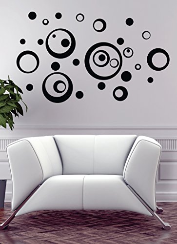 Black Wall Vinyl Sticker Decal Circles, Rings, Dots 25+pc 11in Large Home Décor