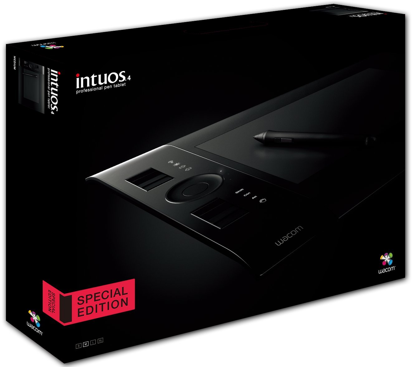 · Adobe Photoshop Elements 8 (Windows / Macintosh) · Corel Painter Essentials 4 (Windows / Macintosh) · Corel Painter Sketch pad (Windows / Macintosh) Contents: Tablet body, Intuos 4 Grip pen, large diameter rubber grip, pen stand · change core