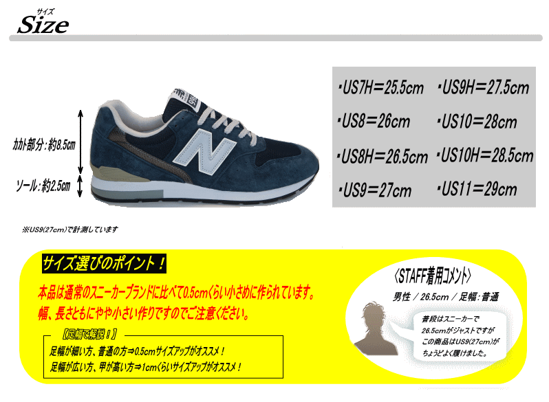 | サイズ | 作り⇒やや小さめ 【サイズ選びのポイント!】 足幅が細い方、普通の方⇒0.5cmくらいサイズアップがオススメ! 足幅が広い方、甲が高い方⇒1.0cmくらいサイズアップがオススメ! |
