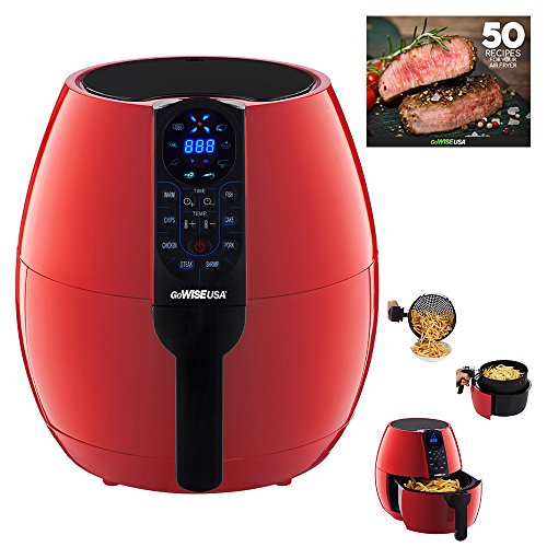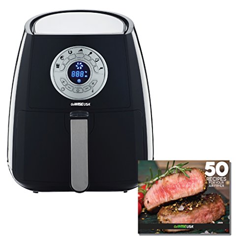 The GoWISE USA air fryer allows you to enjoy your favorite fried snacks and food without the added calories. Rapid air circulation technology cooks food by circulating hot air in all directions, ensuring fast and even cooking. With a wide temperature range of 180 DegreeF - 400 DegreeF, the fryer allows you to prepare a variety of dishes from crispy fries to juicy wings with little to no oil, and in 60 minutes or less. This air fryer is designed to automatically turn off when the basket is removed from the air fryer or after the timer is done. Owner's manual includes cooking guide for foods like fries, meat, poultry, snacks, cakes and muffins.Feature