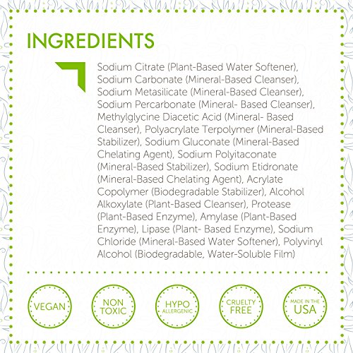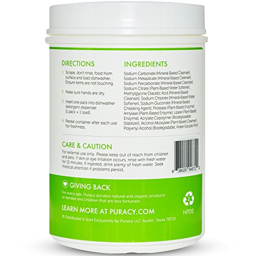 Studio : Puracy Publisher : Puracy Product Description Puracy Natural Dishwasher Detergent is a sulfate-free, grease-cutting, spot-free automatic dishwasher detergent made from plant and mineral-derived ingredients. The biodegradable ingredients were carefully chosen and developed into a premium solution by Puracy, a trusted source for natural and organic, plant-based, child pet safe, hypoallergenic, and effective household essentials. The proprietary blend of renewable ingredients is safe to use around your family and free from harsh chemicals and fumes. The concentrated formula requires only a teaspoon to do a sink full of dishes. Our dishwasher detergent is tough enough for pots and pans, gentle enough for crystal glasses, and pure enough to clean baby bottles. This product is 99.95% Natural, per Puracy's 'What Natural Means to Us' definition available on our website. Ingredients: Sodium Citrate (Plant-Based Water Softener), Sodium Carbonate (Mineral-Based Cleanser), Sodium Metasilicate (Mineral-Based Cleanser), Sodium Percarbonate (Mineral-Based Cleanser), Methylglycine Diacetic Acid (Mineral-Based Cleanser), Polyacrylate Terpolymer (Mineral-Based Stabilizer), Sodium Gluconate (Mineral-Based Chelating Agent), Sodium Polyitaconate (Mineral-Based Stabilizer), Sodium Etidronate (Mineral-Based Chelating Agent), Acrylate Copolymer (Biodegradable Stabilizer), Alcohol Alkoxylate (Plant-Based Cleanser), Protease (Plant-Based Enzyme), Amylase (Plant-Based Enzyme), Lipase (Plant-Based Enzyme), Sodium Chloride (Mineral-Based Water Softener), Polyvinyl Alcohol (Biodegradable, Water-Soluble Film) 0 |